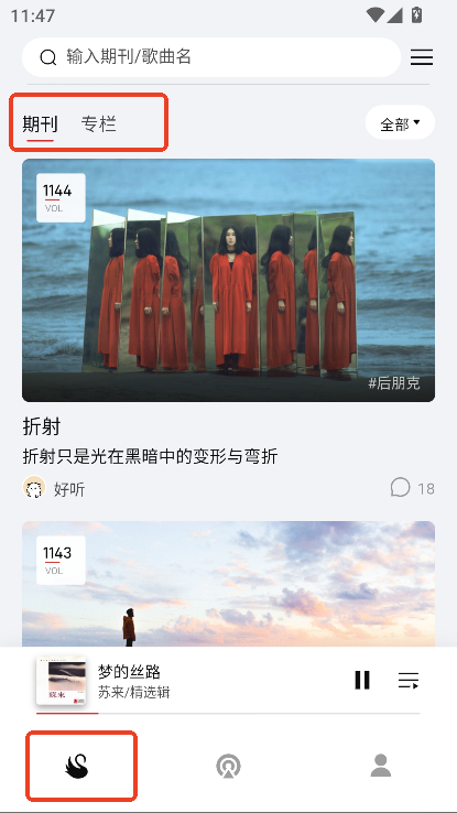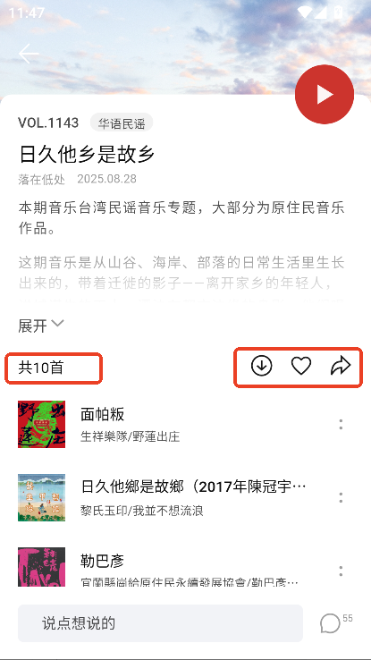 3,选择期刊即可获取歌曲列表,支持收藏下载与转发分享