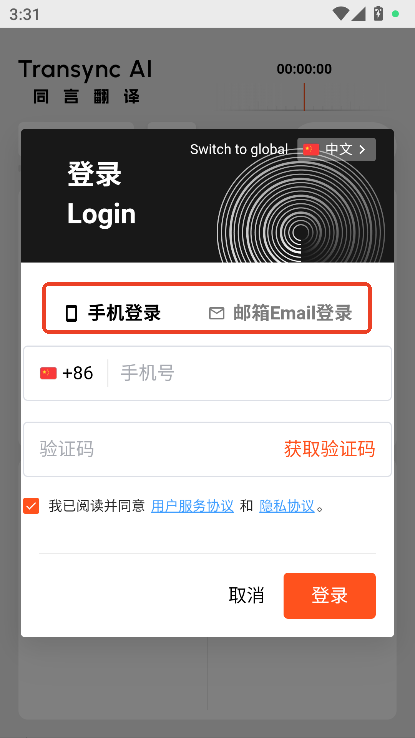 1,进入软件后使用手机账号或者邮箱进行注册登录