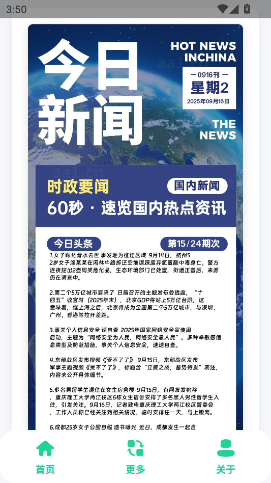 其次适合学生党,平时要上课、写作业,时间比较紧张。想了解时事新闻但没时间看长篇报道,用这款软件正好。简报里的新闻简洁明了,还能看到不同领域的信息,比如科技新闻、教育政策,既能放松大脑,又能积累知识,对学习和开阔眼界都有帮助。