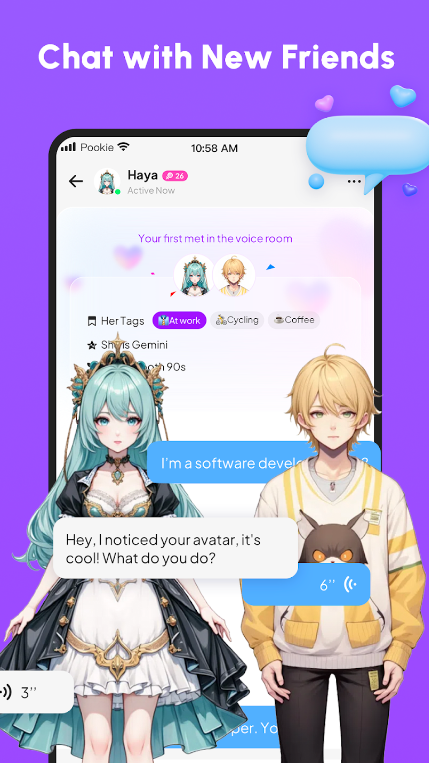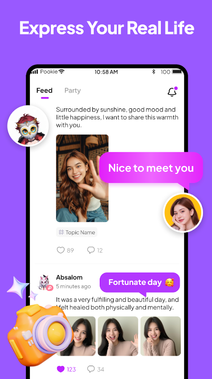 Pookie中文版最特别的是能让你创建自己的人工智能头像,不用露真实长相也能好好社交。不管是想做个可爱的卡通头像,还是酷飒的动漫风格头像,都能按自己的喜好定制,头像还能随你的聊天语气轻微动起来,比如开心时会笑、发疑问时会歪头,用AI头像社交,既保护隐私又有趣,你不容错过。