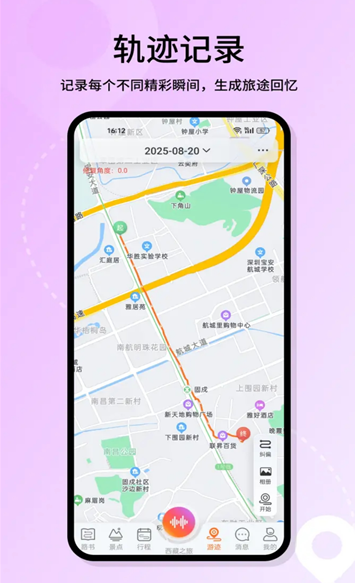 全维度游迹留存:除自动记录旅行轨迹外,还支持同步留存旅途中的感悟、照片与声音,通过游记功能将碎片化体验整合为完整、可回溯的旅行记忆。生成的游记可一键分享至社交平台,也能设置私密模式仅自己查看。