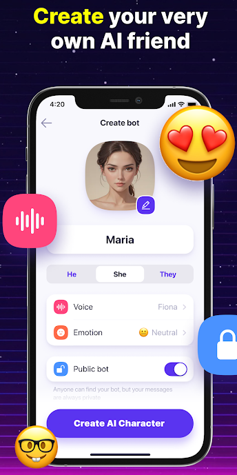 操作门槛极低,无论是选择现成角色开启聊天,还是自主创建专属AI机器人,每一步都有清晰引导,流程均简洁直观,无需专业技术知识,新手用户几分钟内就能快速上手。