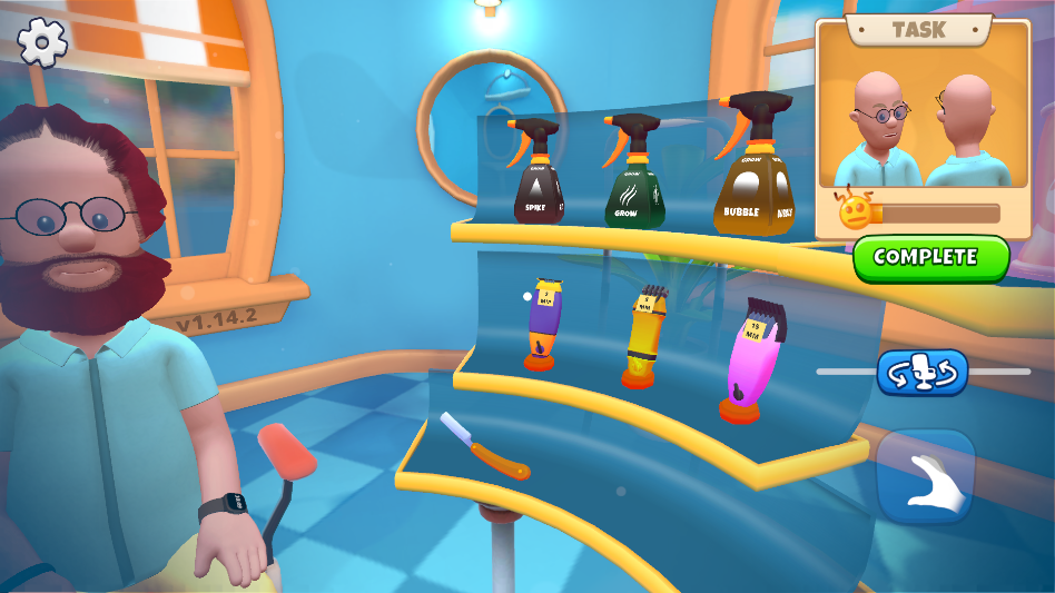 理发模拟器的玩法特别沉浸式,能做的造型操作特别多。可以给顾客剃须、剪不同长度的头发,还能留特定发型、染各种流行颜色,甚至能打造时尚的渐变发型,连胡须和胡子的修剪细节都能把控。比如想给顾客做“渐变短发+棕色染发”,一步步操作下来,看着发型慢慢成型,很有成就感。
