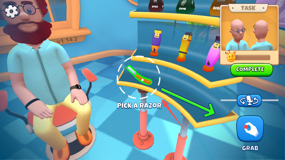 进入游戏之后我们首先可以在右上角看到客人的需求,然后选择对应的理发工具