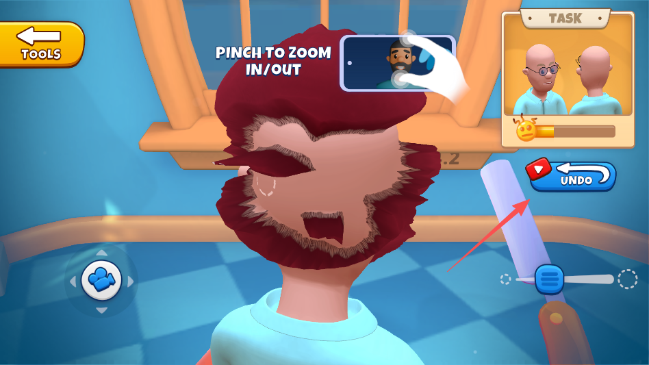 操作一点都不难,手残党也能轻松玩。剪发、染发都有辅助指引,比如剪发时屏幕会有虚线提示修剪范围,染发时点击对应区域就能上色,不用精准控制。就算不小心剪错,也能点击“撤销”按钮重新来,不用怕因为操作不好影响游戏体验,慢慢试几次就能做出好看的发型。