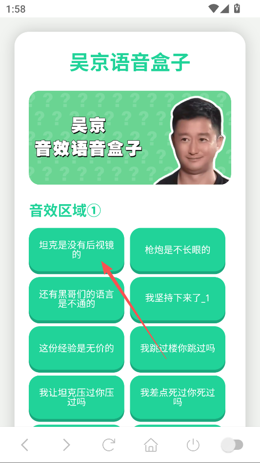 吴京语音盒安卓版是专门收录吴京名台词的语音包工具,核心就是把最近爆火的吴京采访梗做成能直接用的语音,让大家轻松玩梗。不管是想发语音时用 “坦克是没有后视镜的” 调侃,还是想存 “黑哥们的语言是不通的” 台词当铃声,打开这款软件都能找到,快来试试吧。