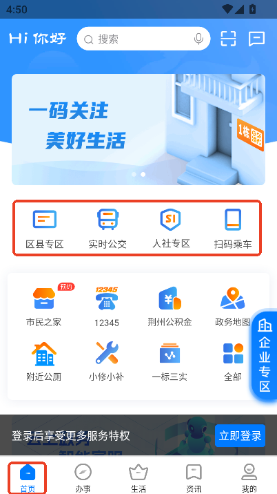 完成基础注册与功能定制,快速上手平台:打开后点击我的进入登录 / 注册,选择自然人用户类型,通过手机号注册并输入姓名、身份证号完成实名认证。登录后可在首页 DIY我的应用,将生活缴费、公积金查询等高频功能添加至主界面,同时在资讯板块订阅时政、医疗等感兴趣的内容,打造个性化使用页面。