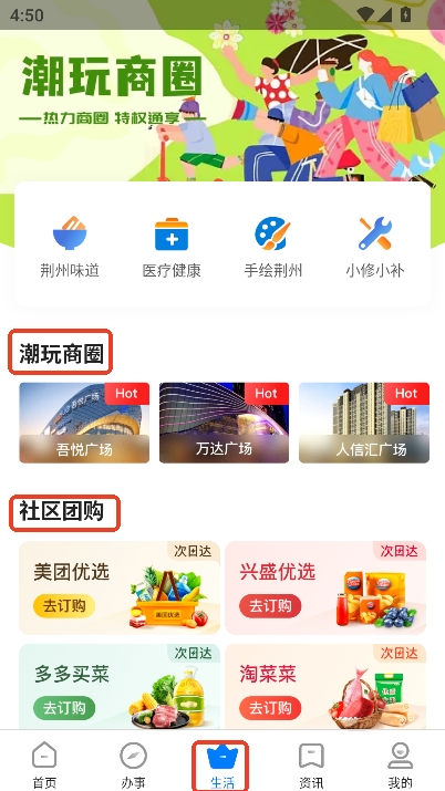 3,提供本地精选商圈与次日达团购入口