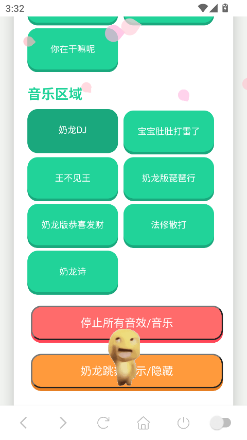 第二个优势是“界面趣味十足,使用体验更轻松”。普通语音软件界面大多简洁但枯燥,这款软件的动态跳舞菜单让操作过程变得有趣。找语音、点收藏的时候都能看到奶龙的可爱动作,不会像用其他软件那样觉得单调,用软件本身都成了一种乐趣。