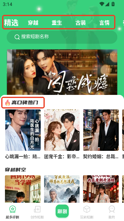 简洁易上手操作界面:采用清晰的板块划分,“刷剧”“创作短剧”“玩转短剧”“我的”等核心入口一目了然,界面设计简洁无冗余信息。新用户无需查看教程,即可快速掌握搜索短剧、收藏剧集、管理创作内容等操作流程。