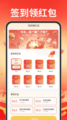 每日无门槛红包签到:每日签到可领最高 20 元现金红包,红包无使用门槛、秒到账,直接抵扣外卖费用,降低日常点餐成本。连续签到还能解锁更多随机红包,福利形式多样,让用户每次点餐都能享受实打实的优惠。