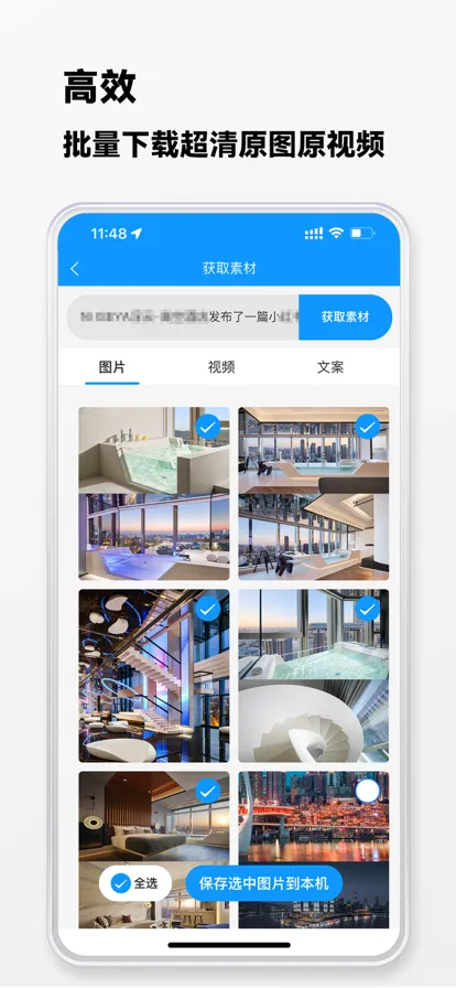 3、支持批量保存:可一次性保存多个链接中的素材,满足大量素材需求,极大提高工作效率。