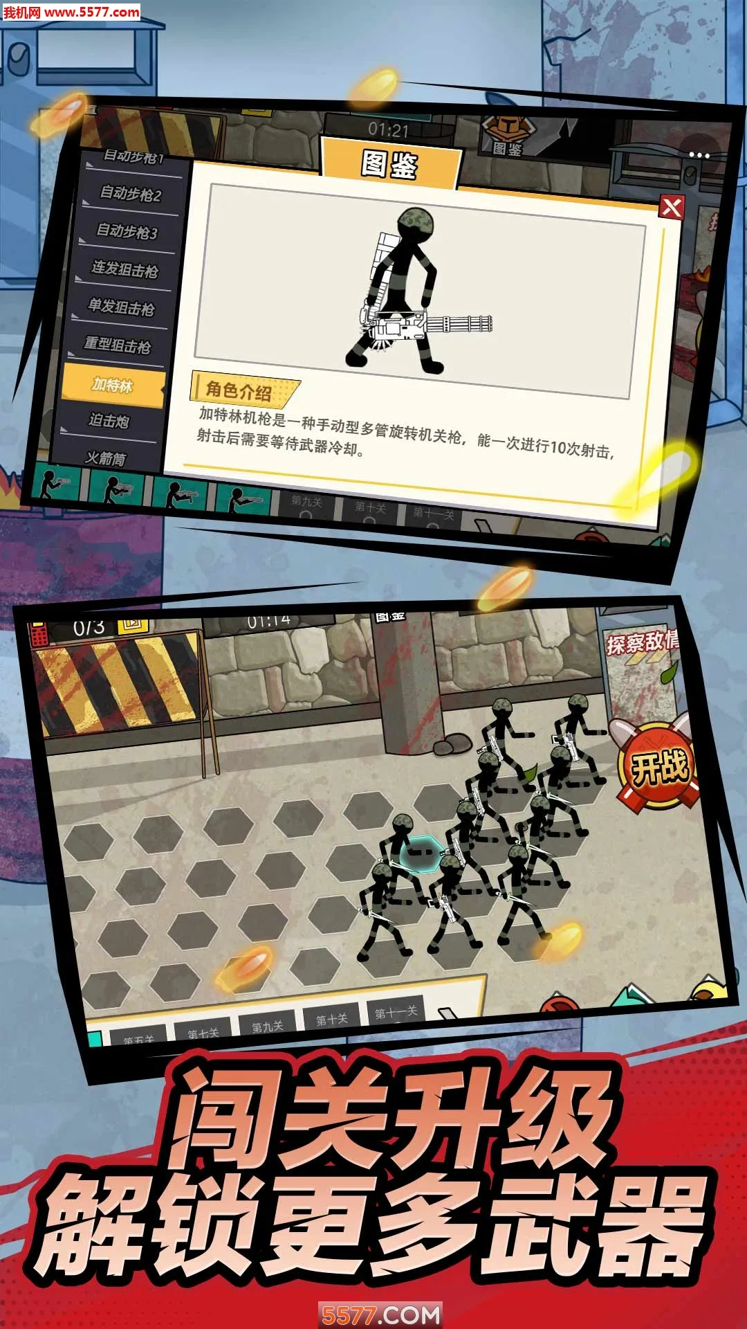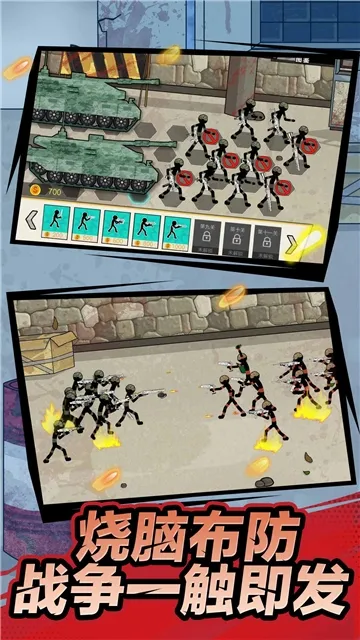 这是一款以火柴人为题材的射击闯关游戏,画面精致细腻。丰富的武器装备是一大看点,从基础步枪到火箭筒,能带来不同作战效果与手感。关卡丰富,超过36个等级,每关都有独特设计,难度递增,很考验策略与反应能力。战斗特效令人眼花缭乱,仿佛置身真实战场,代入感与沉浸感十足。还融入跑酷解谜等多种元素,增添趣味性与挑战性。此外,兵种图鉴系统方便了解兵种信息,有助于制定战术。在这里,你能操控火柴人部队,尽情享受热血激斗的快感 。