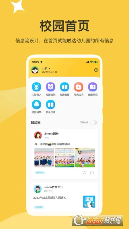 这是一款专为幼儿园打造的多功能综合性软件,以先进技术和友好界面,为教师、学生、家长构建紧密便捷的校园平台。通过加密传输,保障信息安全,一站式承载班级管理等诸多信息,方便快捷。它重视家校沟通,家长能即时收到班级通知,了解孩子动态。还能记录孩子成长轨迹,让家长和老师更好掌握情况。软件不断优化用户体验,修复问题。无论是园长管理员工,还是家长了解孩子,或是老师教学办公,都能借助它高效完成,助力学前教育高质量发展 。