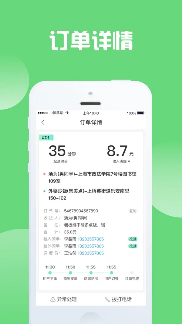 3、记录查询无忧:送餐跑单记录随时可查,骑手能了解订单进展,避免不必要麻烦,零担忧有保障。