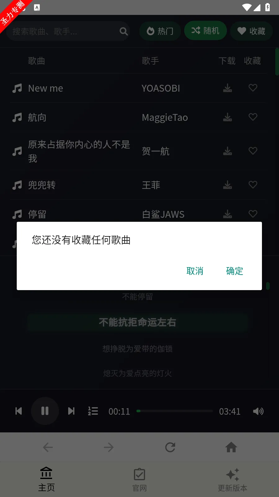 2、资源丰富:拥有庞大音乐库,涵盖流行、摇滚、民谣等各种风格音乐,新歌实时同步更新。