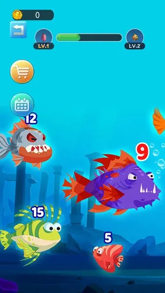 1、经典玩法:采用以大吃小玩法,玩家操控小鱼吃掉比自己小的鱼逐步升级,变得更大更强。