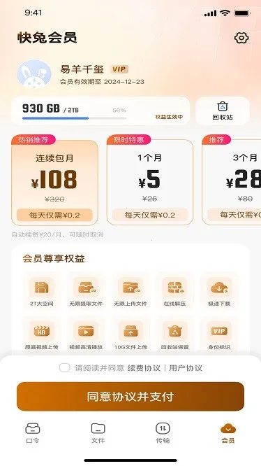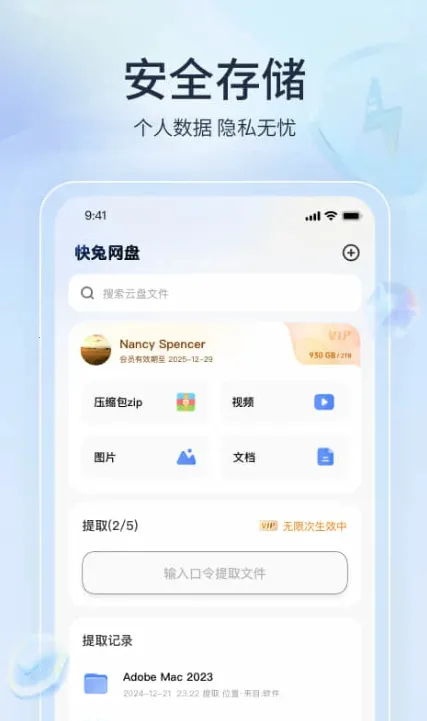 快兔网盘安卓版是高效云存储工具,支持多格式文件上传管理。传输速度快且稳定,采用加密技术保障数据安全。有无广告纯净界面、多平台同步等优势,还提供会员专属大容量空间及多样特色功能 。