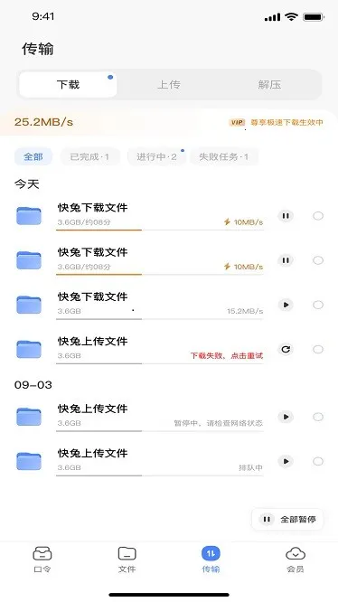 1 传输速度快,采用先进传输技术,结合广泛分布的服务器节点与智能路由,上传下载大文件都能保持高且稳定的速度。