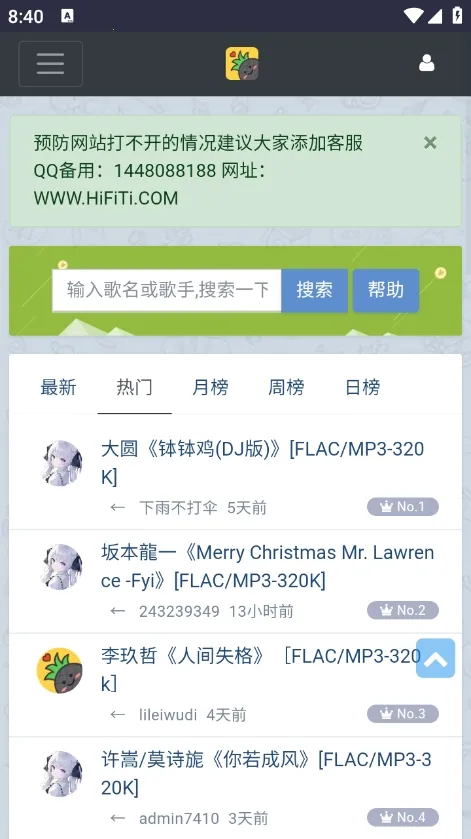 Hifini音乐磁场2025最新版是实用音乐播放软件,汇聚海量不同风格热门音乐,超高品质可免费下载畅听。有多种使用与注册方法,内置高分辨率播放器,集视听多媒体内容,满足多样听歌需求 。