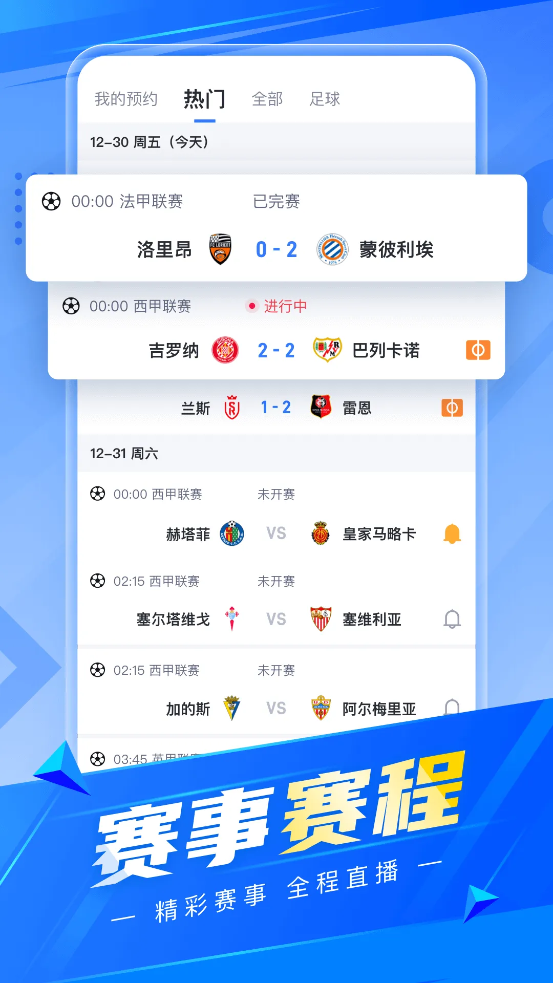 2、观赛体验佳:实时高清同步直播热门赛事,画面超清,1080P流畅无卡顿。提供多路信号,有普通话、英语、粤语等多语解说。