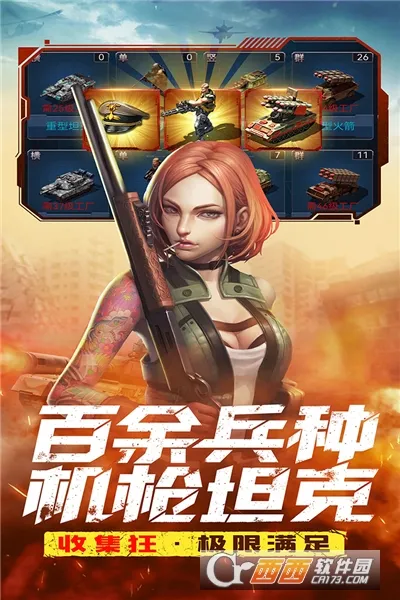 2、丰富兵种搭配:拥有百余坦克及各兵种,玩家可轻松招募,各兵种相互克制,策略搭配打造最强军团,制定战术夺取胜利。