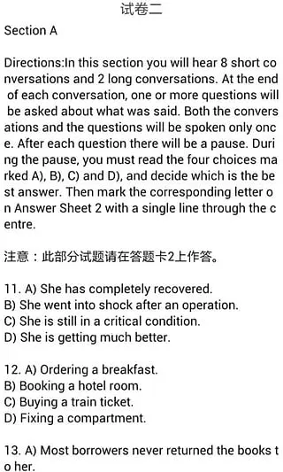 3、紧跟最新:收录最新英语六级考试模拟试题,让考生接触到最贴近考试趋势的题目,及时适应变化。