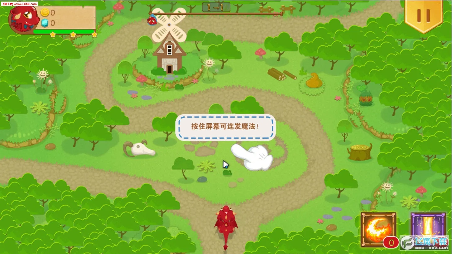千年一次的怪物爆动来袭,世界和平将被打乱。小龙肩负使命,你操控它点击发射魔法对抗怪物。游戏操作简单,有新魔法、技能更换系统,怪物丰富,三大场景 36 关卡,视听效果震撼,未来还会更新。
