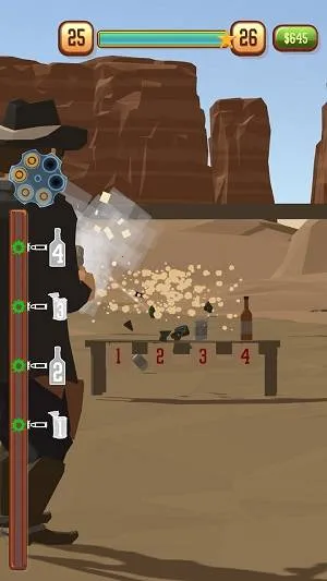 这是一款以西部牛仔为主题的射击游戏,玩家在其中扮演惩恶扬善的牛仔,与坏人展开对决。真正的西部牛仔对决和高难度关卡,让游戏充满挑战性。在这里,能体验狂野的西部世界,用左轮枪消灭敌人,每个关卡都精彩。可运用多样武器展现实力,目标是成为西部牛仔中最亮眼的存在,在战斗中击败挑战者并提升自身属性。虽画面效果普通,但凭借趣味性和刺激程度,给玩家带来刺激游戏体验,留下深刻印象,为玩家带来无尽乐趣和娱乐,吸引了众多喜欢射击挑战的玩家。