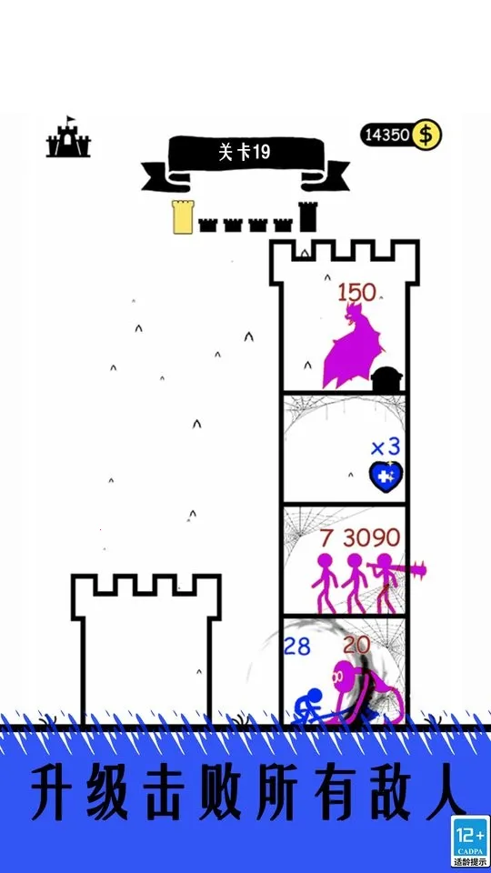 3 角色强大成长:助力角色成长为最强大的勇士,完成所有关卡任务,收获塔楼中的所有宝物。