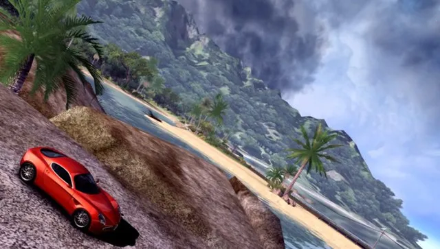 2、真实场景画面:比赛舞台设定在夏威夷瓦胡岛,通过卫星照片及GPS系统制作,精确呈现地形,画面如实地拍摄,场景极为逼真。