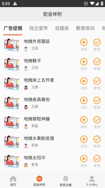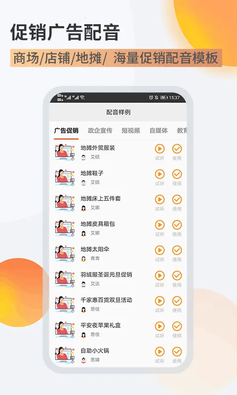 <4> **使用便捷**:支持蓝牙音箱播放,无需导出文件也可使用,并且拥有广告促销等众多行业模板,还有海量真人成品录音可直接导出,方便省事。