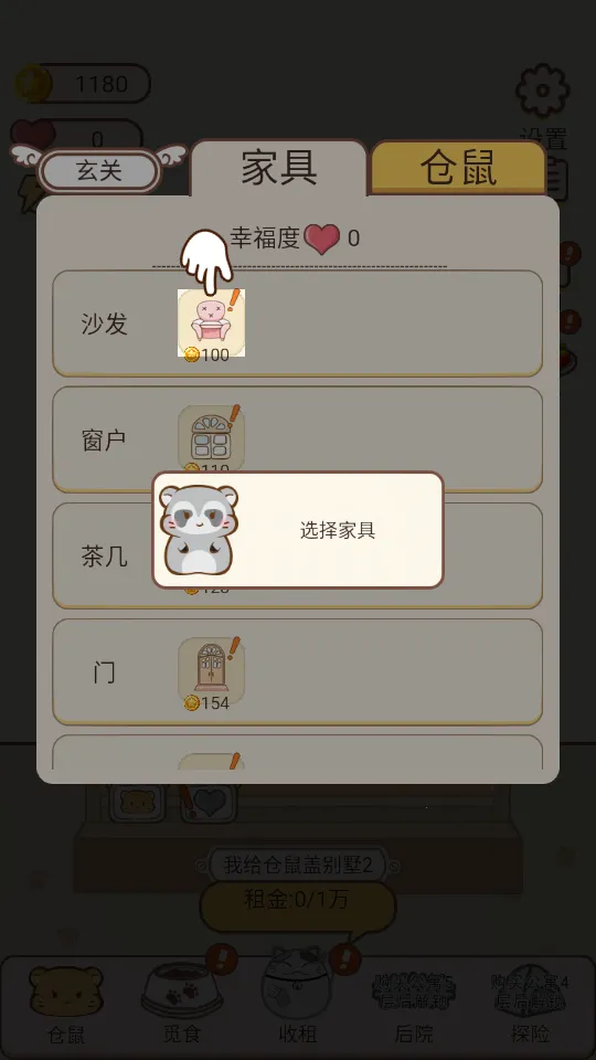3、自由建造:能自由打造仓鼠别墅,超300款家具可选,可布置独一无二的专属公寓。