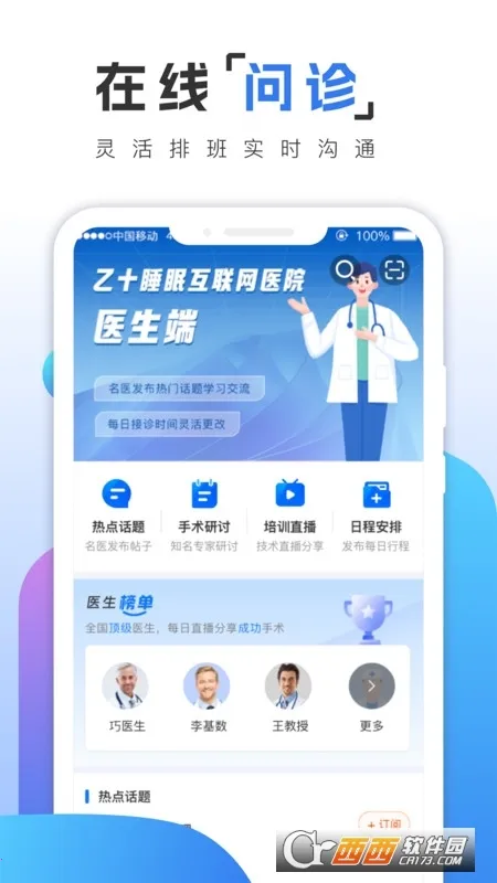 乙十睡眠医生安卓版由上海乙十生物医疗科技有限公司打造。能助用户制定作息、改善睡眠,可分享养生技巧、与医生1对1交流。还具备睡眠数据智能分析、专家入驻等功能,方便医患沟通,提升健康水平 。