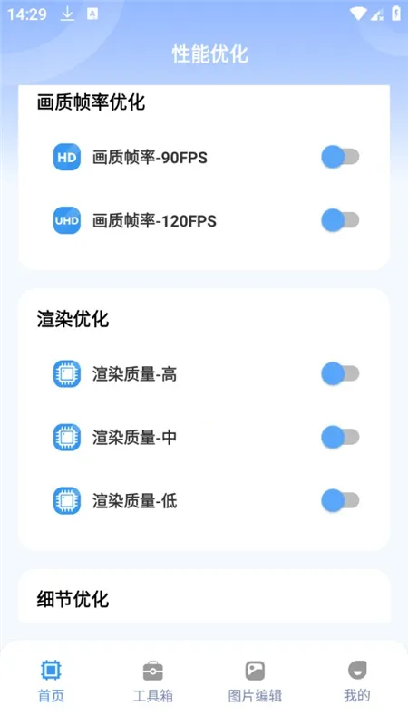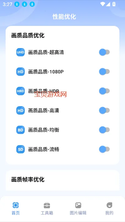 2、功能强大 集画质优化、帧率提升、闪退修复及图片编辑等多种功能于一体,可全方位满足玩家在游戏及日常使用中的多样需求。