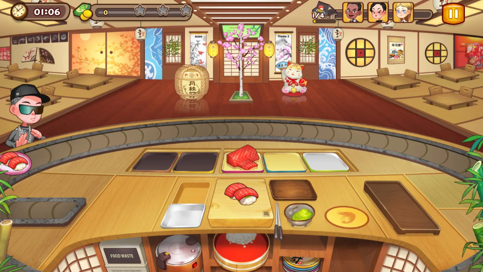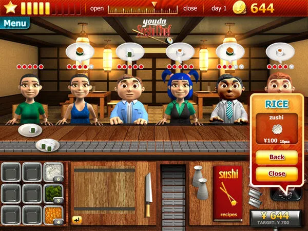 3、玩法丰富多样:模拟真实餐饮经营各环节,有数十种不同顾客,超 50 种特色寿司配方,还有根据节日季节的活动和限定食材。