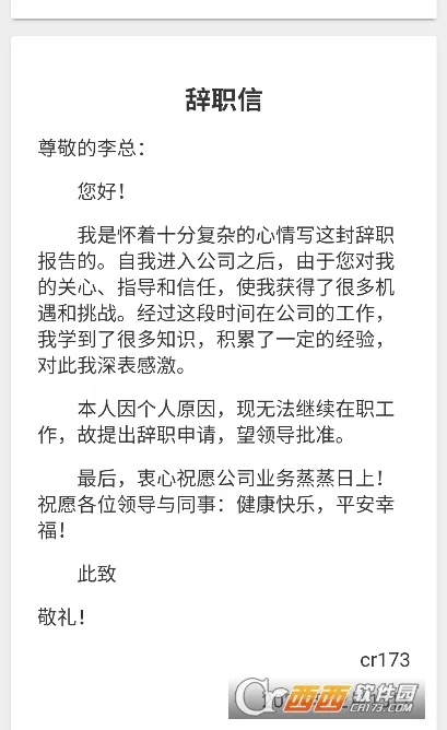 3、个性化定制:支持自定义修改辞职信模板和内容,能根据需求调整措辞、语气等,使辞职信更具个人特色。