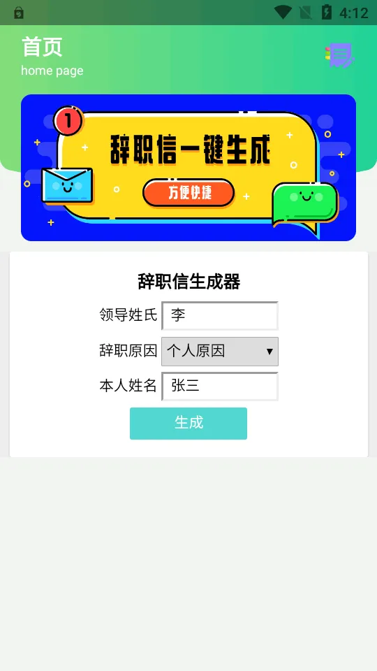辞职信生成器 2025 官方正版是实用文案生成工具。操作界面简洁,通过智能技术,用户输入基本信息,如姓名职位等,就能快速生成多篇不同风格、逻辑严密的辞职信,还支持自定义与多语言。