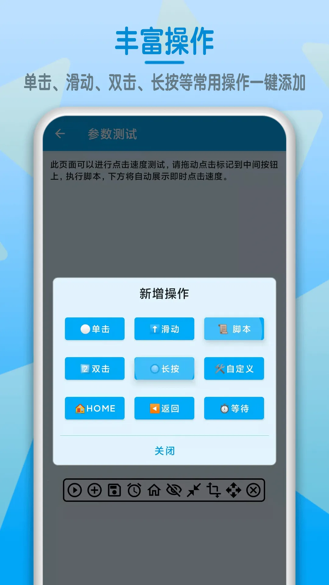 2、功能丰富多样:支持多种手势,如单击、双击、滑动等,可自定义点击位置、速度、间隔和次数等参数,还具备脚本保存、录制、编辑、导出等功能,能满足不同任务需求。