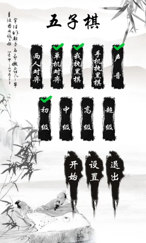 超级五子棋延续经典黑白对弈乐趣,游戏体验佳。界面清新简洁,落子操作流畅。玩家可与人工智能对战,也能邀请好友本地对战,还支持禁手规则切换及先手、难度等级等设定。