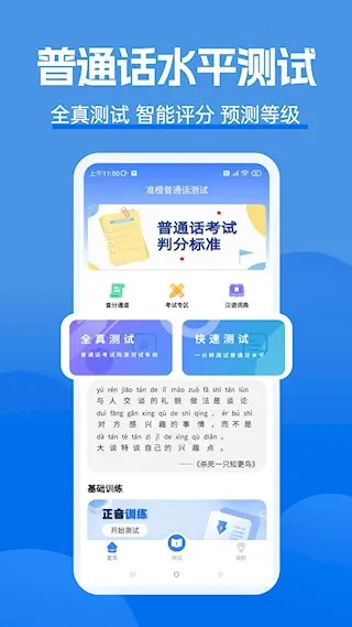 新普通话宝典是专注普通话学习与测试的工具,严格遵循国家大纲,融合智能语音识别。有单音节、多音节等基础训练,含短文朗读与命题说话题型,模拟考试流程,助你熟悉形式、缓解紧张,提升水平。