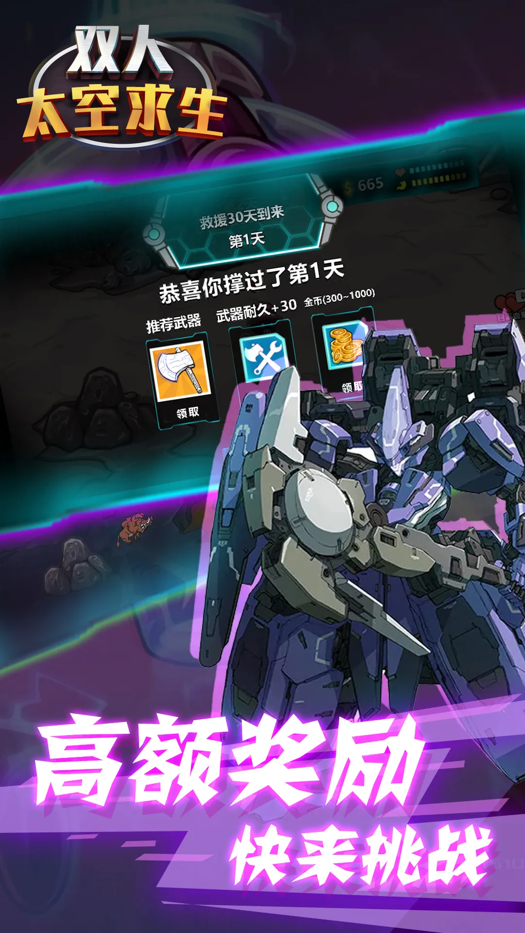 《双人太空求生2025》是休闲策略沙盒游戏,可单人或双人联机。玩家在太空收集物资、建造设备,应对外星生物威胁,完成烽火台建造逃生。有多种模式,武器道具搭配自由,建筑、探索系统丰富,玩法多样耐玩。