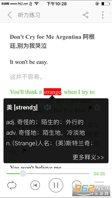 2、每日听力推荐:新增英语听力推荐功能,每天都会推荐经典英语美文听力,为学习者提供优质的听力学习内容。
