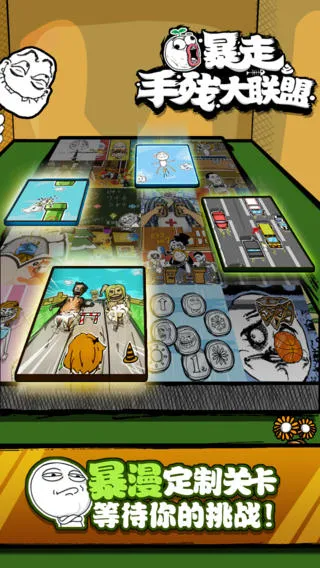 1、画面精致搞怪:游戏画面设计精致华丽,采用暴漫风格,完全表现出了暴走漫画系列的无厘头风格,从场景、道具到人物等画面都以幽默诙谐的方式呈现,每一场手残挑战都将人物处理得充满邪恶,让玩家获得独特快感。