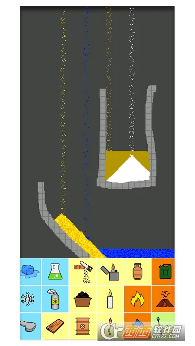 2、丰富元素物品:游戏拥有动物、火、植物等众多类型的元素物品,像鱼、蝴蝶、烟花粉、草、花种子等,玩家可以选择岩浆、炸弹甚至常用食材进行物理粉末实验模拟。