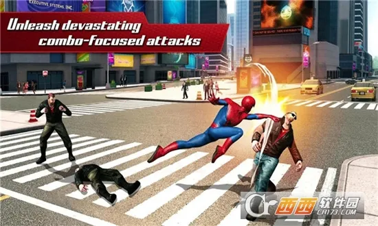 1、高品质流畅动画:玩家能在城市间自由飞荡,体验前所未有的感受,仿佛化身为真正的蜘蛛侠在都市中穿梭。