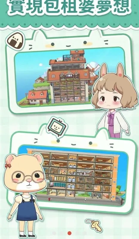 1、丰富的公寓与商铺体系:游戏中有单人公寓、男生公寓、女生公寓、标准公寓、复式公寓等不同类型的公寓房间,还有餐厅、快递驿站、早餐铺、面包店等商铺,满足居民多样生活需求,玩家可规划扩建大楼,租出更多公寓与商铺来收取租金。