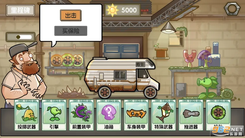 2、高度自由DIY:玩家可以自由地将各种植物与汽车组装在一起,还能对引擎、前置装甲、油箱等战车部件进行升级选择,打造属于自己的独特战车。