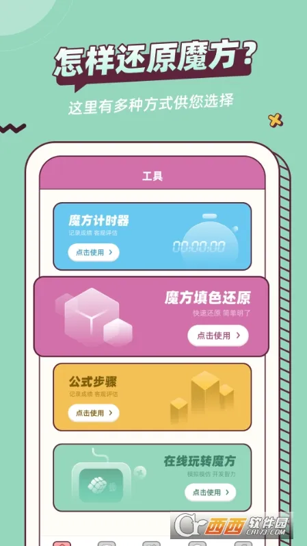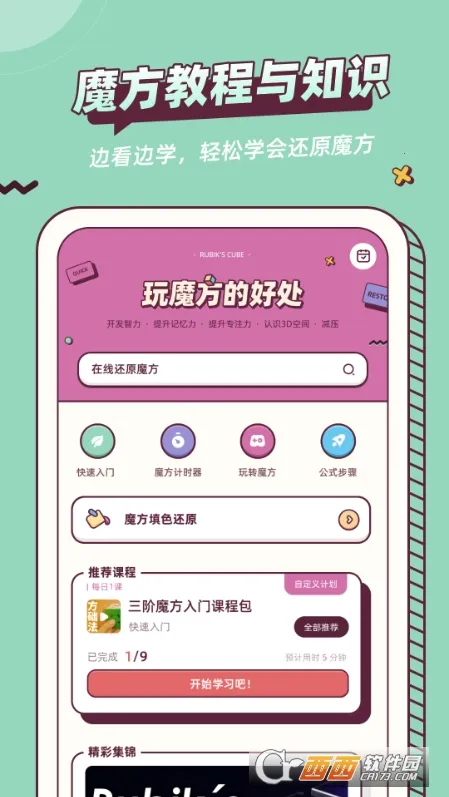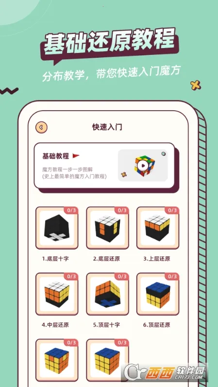 4、操作便捷免费:应用页面设计简约,操作容易上手,且可以免费使用,降低了用户的学习成本,方便用户轻松开启魔方学习之旅。