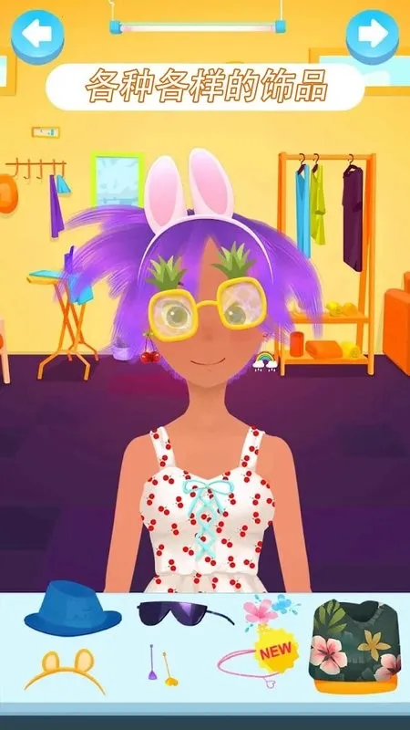 4、自由创意搭配:内容上可自由变换穿搭装扮,选择喜爱的场景,培养创造力和爱美天性,道具免费使用,通过完成任务获金币购买商城物品。